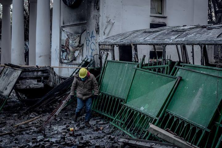 Утренняя роса. В воздухе до сих пор витает запах газа. Сейчас на Грушевского царит сюрреализм. Мертвые машины, стоят словно призраки застывшие вне времени. Люди создают максимально неприятный шум, который кроме ужаса никаких ассоциаций не вызывает. На месте ментов, я бы уже давно сдался. Эта картина производит адское впечатление! Куда более сильное, чем пылающая техника. Если брать по шкале Данте, то это собирательный образ всех кругов "Божественной комедии".