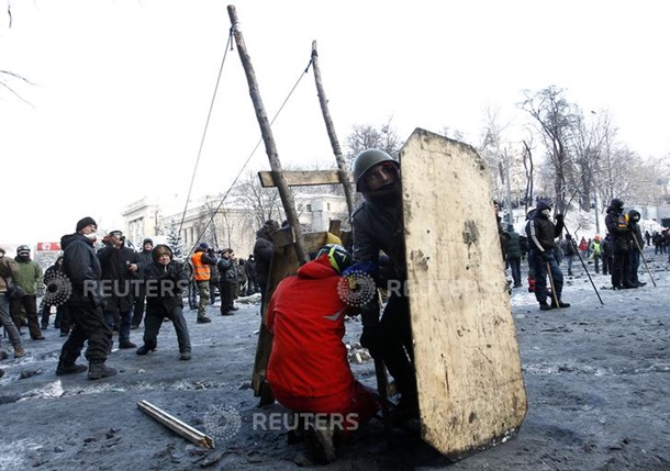 Ранее протестующие построили катапульту. Протестующие на улице Грушевского в центре Киева сконструировали двухметровую рогатку, передает агенство УНИАН 23 января в Киеве.
