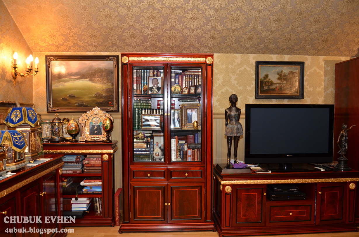 Друзья, Вашему вниманию эксклюзив: фоторепортаж из дома Пшонки в селе Гореничи (Киево-Святошинский р-н). Древние иконы и картины, похищенные Евангелии, мощи Святых в кабинете, яйца Фаберже по всему дому, коллекция холодного оружия, многочисленные награды, портреты Пшонки и Януковича, а также многое-многое другое. Дальше без комментариев...