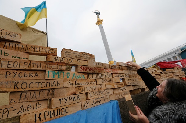 Минувшей ночью часть подписанных брусков пришлось сжечь с целью обогрева, впрочем, изгородь быстро восстанавливается. Стена плача и борьбы привлекает туристов и протестующих, и стала одним из основных мест для фотографирования на Майдане.