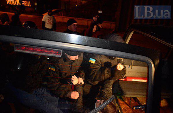 Однако к заранее анонсированной акции застройщик, по-видимому, оказался готов. В назначенное время на место строительства приехали четыре автобуса с милиционерам. Журналисты опознали в них бывших "беркутовцев". Представляться милиционеры отказались, вели себя агрессивно, сразу принялись задерживать активистов. Началась потасовка, во время которой один из правоохранителей ударил в живот корреспондента LB.ua. Также досталось журналистке "Нового канала". Около 10 человек милиционеры запихнули в автобусы и попытались их вывезти, но не сторону местного управления МВД, а в направлении центра.