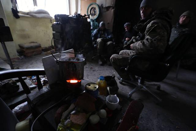 Украинские солдаты отдыхают между боями на окраине Донецкого Аэропорта.