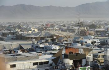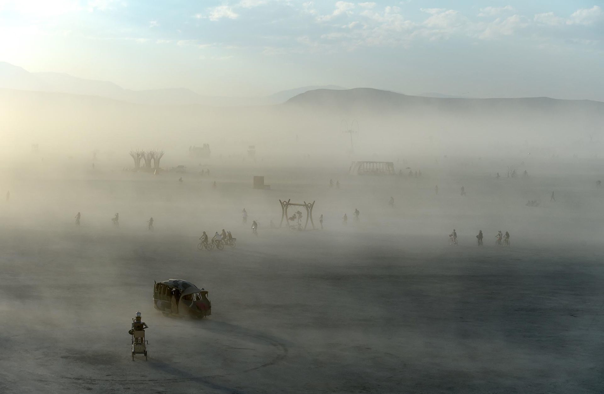 Вечеринка длиной в неделю началась с песчаной бури, завершилась — по традиции — сжиганием инсталляции в виде человеческой фигуры.