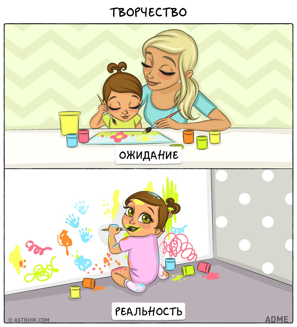 Например, представления о том, как будет есть или спать ребенок, на 180 градусов могут отличаться от того, как это будет на самом деле. С появлением малыша родители делают много неожиданных открытий о себе, ребенке и новой совместной жизни.