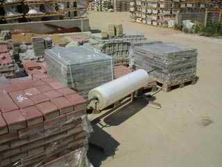 Идет процесс выбивки тротуарной плитки. И ее складирование на