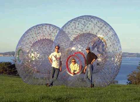 Теперь пару слов о том, куда, собственно, катится этот самый "Зорб". Сферы могут стоять на месте, катиться на произвольной скорости и плавать. На вопрос о потопляемости "шара", производители не без сарказма замечают, что в таком случае зорбонавт должен весить 13 тонн, что, в общем-то, вероятно, однако вряд ли он сумет забраться внутрь шара.