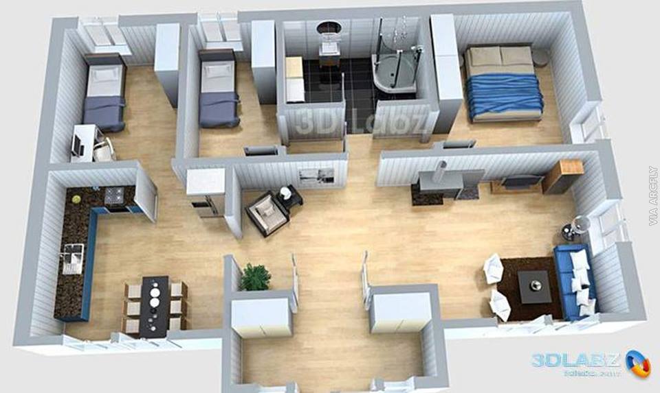 Примеры 3d планов квартир, студий, квартир в таун-хаусах и домов (230+ примеров)