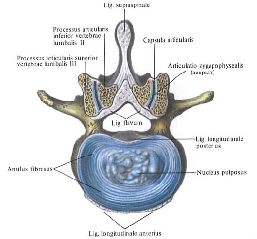 Межпозвоночный симфиз, symphysis intervertebralis. представлен межпозвоночными дисками (хрящами), залегающими между телами двух смежных позвонков на протяжении шейного, грудного и поясничного отделов позвоночного столба.