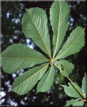 Ботаническая характеристика. Семейство конскокаштановые. Красивое раскидистое дерево высотой до 30 м. Листья супротивные, длинночерешковые, пальчатосложные, округлой формы. Красивые беловато-розовые цветки собраны в крупные пирамидальные метелки. Цветет в мае–июне. Плоды – шаровидные коробочки, покрытые шипами, содержат по 2–3 шт. крупных семян.