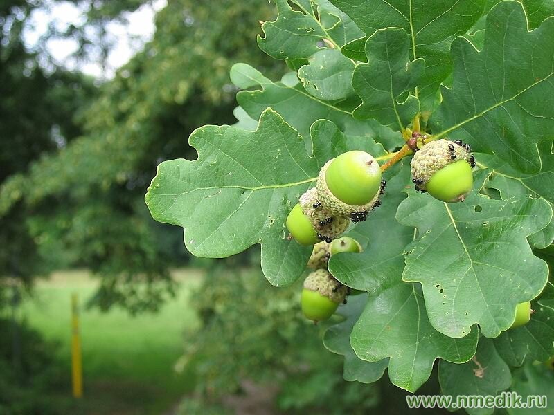 В желудях содержится крахмал (до 40%), дубильные вещества (до 8%), белки, жиры, сахара; в листьях – кверцетин, кверцитрин, дубильные вещества и пентозаны.
