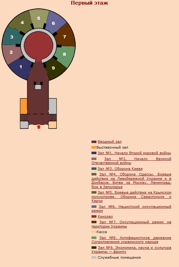 Мемориальный комплекс истории ВОВ колоссальное сооружение с музейным фондом более 300 000 экспонатов, выставки боевой техники времён второй мировой войны и послевоенного периода, венчает комплекс скульптура Родина- мать высотой 102 метра и являющейся шестой по высоте скульптуре в мире. Это место, которое посещают тысячи человвек, не безразличных к памяти людей проливавших кровь и пот, и даже отдававших жизнь за наше будущее. Ниже приведены план- схема музея ВОВ, первого и второго этажей.