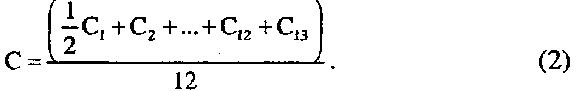 де С1, С2, ... С12 - сума (вартість) оборотних коштів на початок кожного місяця року (з січня по грудень);