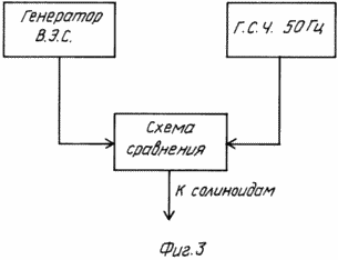 С увеличением частоты вращения ротора 6 частота тока на втором входе СС увеличивается до 50 Гц. В момент совпадения частот генератора ВЭС и ГСЧ схема сравнения через замкнутые электроконтакты флажка 15 обесточивает соленоиды створок 13.
