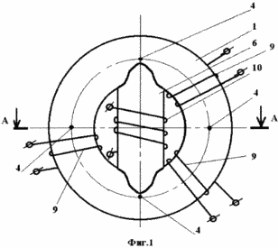 Гидромагнитное динамо содержит замкнутый тороидальный корпус 1 из металлокерамики, внутренняя поверхность которого покрыта слоем 2 синергетика, а полость заполнена дистиллированной водой 3 с добавлением тяжелой воды. В полости корпуса 1, представляющей собой замкнутый тороидальный канал, размещены электроды 4 из твердосплавного материала, подключенные к конденсаторной батарее, а и обмотки возбуждения 5, подключенные к источнику питания. Снаружи корпуса 1 смонтирована цилиндрическая герметичная камера стабилизации 6 из металлокерамики, полость которой сообщается с полостью корпуса 1. Внутренняя поверхность камеры 6 и покрыта слоем 7 синергетика, а полость заполнена дистиллированной водой 8 с добавлением тяжелой воды. Корпус 1 и камера 6 имеют снаружи обмотки 9 и 10.