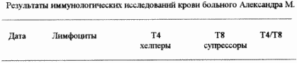 С ноября 1995 г. состояние больной стало ухудшаться: появилась резкая слабость, потливость по ночам, быстрая утомляемость, стал постоянно рецидивировать герпес (Herpes labialis), резко упали показатели иммунного статуса (см. таблицу).