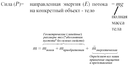Таким образом, все привычные для нас свойства объектам сообщает направленный энергетический поток, то есть сила. Проще говоря, масса как характеристика инертности тела – это сила.