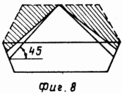 ![]() | На фиг. 1 изображен бриллиант с нечетным количеством граней девятилучевой 64-гранный, вид сбоку; на фиг. 2 то же, вид сверху; на фиг. 3 то же, вид снизу; на фиг. 4 монокристалл алмаза в виде сросшихся пластин, вид сверху; на фиг. 5 то же, вид сбоку; на фиг. 6 шлифование площадки с двойным противоположным перекосом, вид сбоку; на фиг. 7 черновая обточка, вид сверху; на фиг. 8 подшлифовка основных граней нижней части, вид сбоку; на фиг. 9 чистовая обточка полуфабриката тремя равными радиусами, вид снизу. | ||