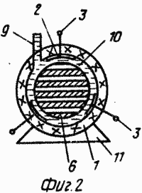 Фиг.2 - сечение двигателя в плоскости, перпендикулярной оси вращения.