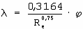 при турбулентном (2320<Re<105)