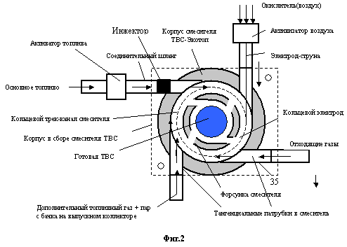 Эффективная гомогенизация топлива обеспечивается вихревым смешиванием компонентов ТВС, например, вихревой улиткой или предельно простым устройством - вихревым Экотопом.