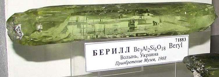Берилл. Длина более 12 см. Володарск-Волынское пегм. поле, Украина. Образец: Мин. музей им.А.Е. Ферсмана Фото: © А.А. Евсеев.