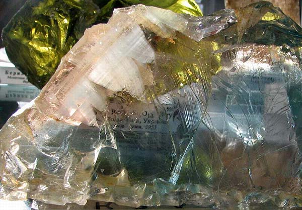 Небезынтересно, что на Волыни геологи нашли обломок гигантского кристалла топаза, представляющий собой выколку по спайности, голубого цвета с винно-желтой по краям оторочкой. Если мысленно дорисовать первоначальные геометрические очертания кристалла, то можно предположить, что вес его составлял примерно 200 кг. Образованию таких крупных кристаллов способствуют большие размеры занорыша и спокойная, медленная кристаллизация из горячих растворов, имеющих постоянный состав и режим.