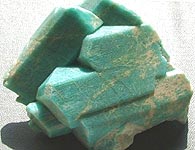 Амазонит сегодня наиболее широко применяется для изготовления бус, брошей, запонок, ваз, шкатулок, пепельниц и т.д. Амазонит чаще всего встречается в виде крупных кристаллов, реже друз и отдельных кристаллов размером до 1,5 м (иногда и более). Амазонит непрозрачен или просвечивает в тонких пластинах. Окраска амазонита зеленая, зеленовато-голубая, голубовато-зеленая. Часто в образцах амазонита наблюдаются пертитовые вростки белого альбита, что придает им особую привлекательность и шелковистый отлив. Зеленый цвет амазонита исчезает при нагревании его до 300-500oС, однако он может быть восстановлен под воздействием радиоактивного или рентгеновского облучения или даже просто при длительном хранении в темноте. При нагревании до температуры более 600oС происходит необратимое обесцвечивание амазонита. Экспериментально было доказано, что амазонитовую окраску можно получить путем облучения рентгеновскими лучами минерала микроклина, обогащенного различными элементами-примесями.