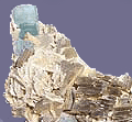 Шестигранные кристаллические призмы. Голубая разновидность берилла. Название аквамарина произошло от латинского aqua marina - морская вода, поскольку цвет камня напоминает теплые тропические моря. Свое название получил за окраску, которая зависит от содержания ионов железа. Когда-то аквамаринами украшали царские короны, их использовали в качестве линз для очков (первые линзы датируются 1300 годом). На ярком солнце постепенно бледнеют и выгорает до бесцветного. Цвет аквамарина может быть ярче при искусственном или вечернем освещении. Аквамарины очень непросто отличить от голубых топазов и кварцев. Аквамарины могут быть получены из малоценных зеленоватых бериллов их нагреванием до 400-500oС, причем отличить их от природных крайне сложно. Крупные кристаллы аквамарина часто использовали для резьбы и изготовления различных дорогих поделок крупных размеров.