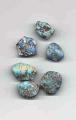 В настоящее время широкое распространение получила синтетическая бирюза (на фото справа, довольно близкая по составу к природной, обычно яркая голубая с паутинными прожилками или беловатыми вкраплениями) и имитация бирюзы, это 80% рынка бирюзы. Венская бирюза (на фото слева) - термически обработанная и спрессованная смесь малахита, гидроокиси алюминия и фосфорной кислоты. Бирюза под названием неолит - из фосфата меди и гидроокиси алюминия. В такой синтетической бирюзе появляется яркая и равномерная зеленовато-желтая окраска, нехарактерная для природной бирюзы. При нагревании она чернеет, а не трескается. Синтетический материал очень однороден, содержит микровкрапления окрашенных или белесых частиц. При носки такая синтетическая бирюза хороша тем, что она никогда не теряет свой цвет и не вытирается.