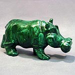 Углекислая соль меди Сu2СО3(ОН)2. В России он всегда считался драгоценным камнем, хотя на Урале его было достаточно много. Сегодня залежи уральских малахитов практически исчерпаны. Чаще всего малахит наблюдается в виде корочек, сферокристаллов, почковидных масс, натечных почковидных агрегатов радиально-лучистого, параллельно-шестоватого и зонально-концентрического строения. Поэтому на срезах малахита видны характерные концентрические узоры. Оттенки малахита варьируются от бирюзового, изумрудно-зеленого и голубовато-зеленого до зелено-черного. Сегодня много малахита на рынок поставляет Африка (Заир, Намибия, на фото справа). Это ценный поделочный кеамень. Малахит используется в разных странах с древности. С малахитом связано множество легенд и мифов (Хозяйка Медной горы на Урале, в Индии считалось, что он может сделать человека навидимым, очищает от обид и тревог).