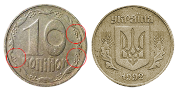 Еще нумизматов интересуют 10 копеек 1994 г. с гладким гуртом, если монета в отличном состоянии, ее могут купить более чем за 1000 грн.